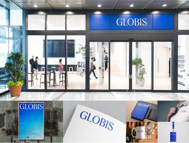 コーポレートカラーは、「GLOBIS BLUE」として新たに選定。新たに選んだ明るく鮮やかな青は、「志の熱量」を、炎の温度が高いと青くなる特徴に見立てて表現しています。