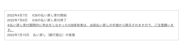 ※当該申出期間内に申出をしなかった前払式支払手段の保有者は、当該払い戻しの手続きから除斥されますので、ご注意願います。