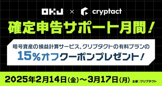OKJでは確定申告シーズンに向けて、株式会社Pafin(Cryptact)様とユーザーの皆様の確定申告をサポートするキャンペーン「確定申告サポート月間!」を開催いたします。