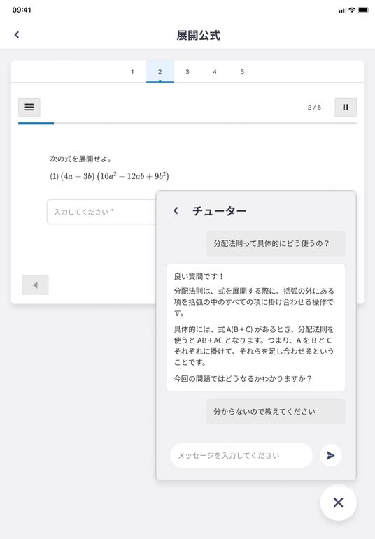 - 質問解決の即時性: 疑問をAIチューターにリアルタイムで質問し、すぐに回答をえることができ、「いつでも、どこでも」効率的かつ自律的に学習を進めることが可能になります。