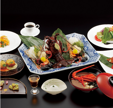 ※写真の伊勢海老の活造り、伊勢海老のサラダは2名様盛りです。