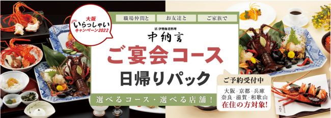 【大阪いらっしゃいキャンペーン2022】対象商品として大阪府内のおすすめ店を厳選! 職場の仲間・お友達同士・ファミリーの皆様にご利用いただけます。