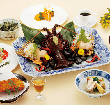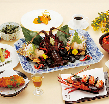 ランチもやっぱり伊勢海老の活造り。真珠コースは「伊勢海老の活造り」に加えて、「伊勢海老 焼物」季節の味わいをお楽しみいただけます。