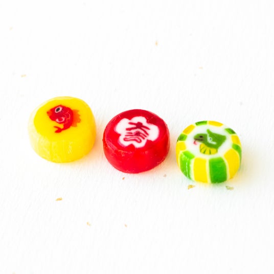 大吉柄(りんご味)鯛柄(パイナップル味)干支巳柄(マスカット味)