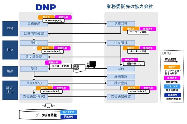 大日本印刷株式会社(本社:東京 代表取締役社長:北島義斉 資本金:1,144億円 以下:DNP)は、業務委託先の協力会社に対する見積依頼から発注、納品物の受領、支払通知等に至る全ての取引のプロセスをデジタル化するため、OpenText社の「WebEDIシステム」*を導入します。