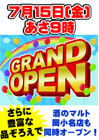 改装のため閉店しているマルト岡小名店は、7/15(金)にリニューアルオープンさせていただきます。