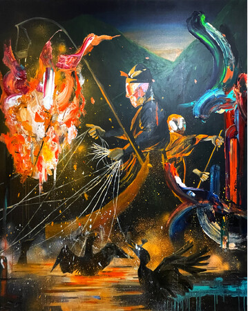 8歳から始めた書道をバックグラウンドに文字のみならず抽象絵画など既成概念に囚われない表現を追求する現代アーティスト、真弓将。