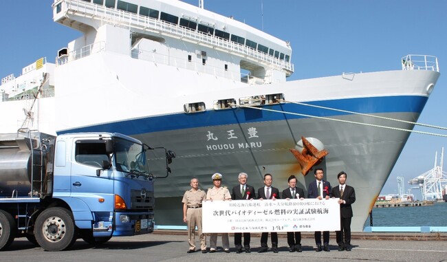 川崎近海汽船株式会社(本社:東京都千代田区、代表取締役社長:久下 豊、以下「川崎近海汽船」)と株式会社ユーグレナ(本社:東京都港区、代表取締役社長:出雲 充、以下「ユーグレナ社」)および鈴与商事株式会社(本社:静岡県静岡市、代表取締役社長:伊藤 正彦、以下「鈴与商事」)は、静岡県清水港において、川崎近海汽船が保有・運航するRORO船※1「豊王丸」に、ユーグレナ社が販売する次世代バイオディーゼル燃料「サステオ」(以下、「サステオ」)を使用し、実証試験航海を開始したことをお知らせいたします。
