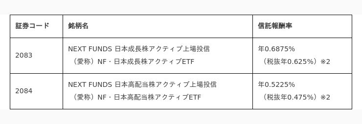 ~「NEXT FUNDS 日本成長株アクティブ上場投信」、「NEXT FUNDS 日本高配当株アクティブ上場投信」~