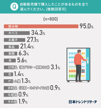 日本トレンドリサーチ(運営会社:株式会社NEXER)は、「自動販売機に関するアンケート」を実施し、結果をサイト内にて公開したので紹介します。