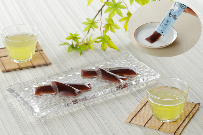 新発売のひとくち水羊羹はいつでも好きなときに片手で食べやすい新しい仕様のスティックタイプの水羊羹。