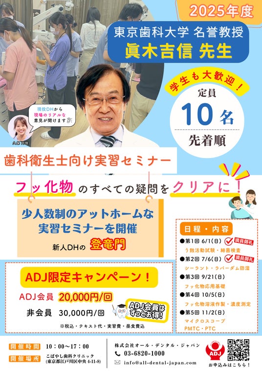 株式会社オール・デンタル・ジャパン【ADJ】(代表取締役:木下英明・廣田祥司)はDH向けハンズオンセミナーを、2025年7月6日(日)に都内のクリニックにて開催しました。