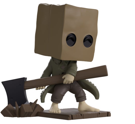 頭に紙袋を被った不思議な様相の少年「モノ」が作中でも登場した斧を引きずる姿で立体化!