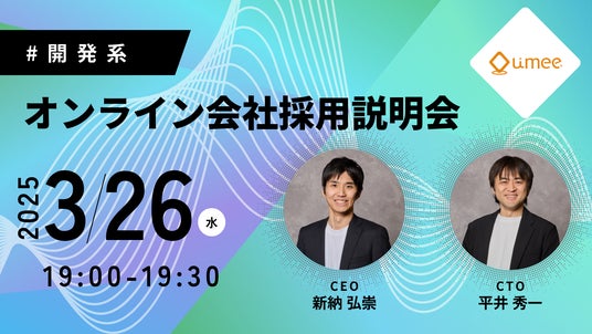 ユミーでは幅広いポジションを積極採用中です。この度、初めての試みとして会社説明会をオンラインにて開催し、弊社経営陣よりビジョンや今後の事業展望を直接ご説明します。事業やプロダクトにご興味をお持ちの方は、ぜひ下記リンクよりお申し込みください。