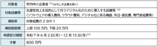 昨年度に引き続き、市内中小企業者の皆様がDX・デジタル化のために導入する設備に対して補助を行います。