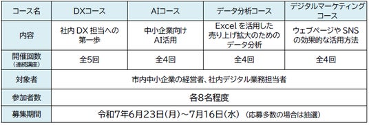 1. デジタル人材育成講座 (8月~9月実施予定)