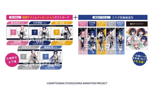 店舗でコラボグッズを2,000円(税込)お買い上げごとに限定デザインの和紙風ステッカーをランダムで1枚お渡しします。