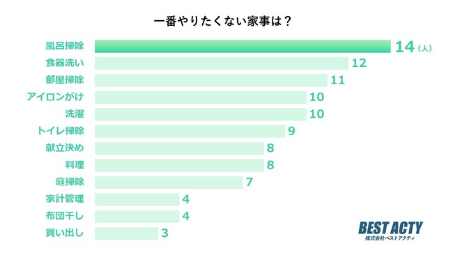 アンケートの結果、「風呂掃除」と答える人が最も多い結果となりました。