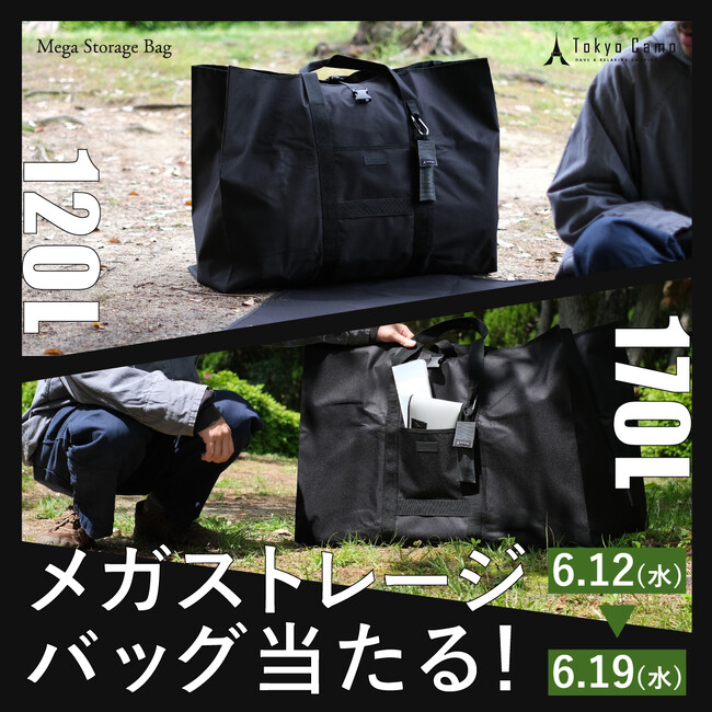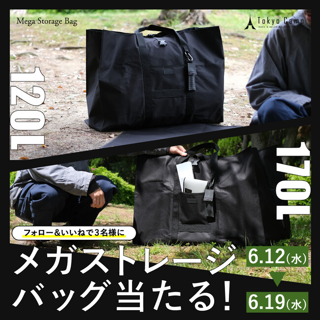対象期間中にTokyoCamp公式SNSからキャンペーンに参加いただくと、抽選で合計4名さまに新商品「メガストレージバッグ」をプレゼントいたします。