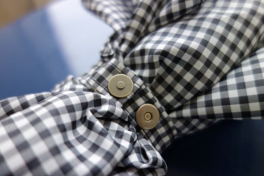 事例1:生地内側に縫い付けるフラットタイプの「マグネットホック」