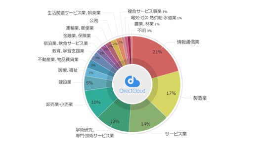 DirectCloudは、情報通信業、製造業、サービス業、専門・技術サービス業、卸売・小売業など、さまざまな業界で導入が進んでいます。