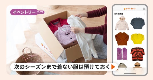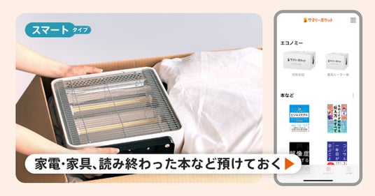 サマリーポケットは1箱330円~のお手頃価格で、モノの預け入れから取り出しまで全てアプリ・Webで完結できる宅配型の収納サービスです。専用ボックスに預けたい荷物を詰めて送ると、空調・セキュリティが徹底管理された環境でお預かりをし、荷主自らが足を運ぶ従来のトランクルームとは異なり、宅配便を活用することで居住地域に関係なく、預けたモノを確認したいときも、取り出したいときも、自宅にいながらスマホ一つで操作が可能になります。