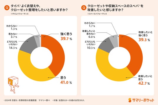 さらに「クローゼットや収納スペースのスペパ(スペパ:空間対効果、空間の利用効率を良くする暮らし方)を改善したいと感じますか?」に関しても、約82%がスペパを改善したいと回答しています。