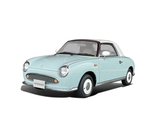 1989年の東京モーターショーでの好評をうけて1991年に発売された2 ドアパーソナル・クーペがフィガロ(FK10 型)です。「Be-1」「PAO」「エスカルゴ」に続く日産のパイクカーシリーズ4 作目となったフィガロは、2 万台の限定生産車にもかかわらず、恋愛至上主義を謳った「東京ヌーベルバーグ」のキャッチコピーや、フィガロをフィーチャーした短編オムニバス映画「フィガロストーリー」の制作・公開など、異例ずくめなマーケティング活動が展開されました。専用のオープントップ機構をもつ小粋でエレガントなスタイリング、白い本革インテリア、メーター類に至るまで専用デザインのインストパネルなど、あらゆる部分が入念に作り込まれています。