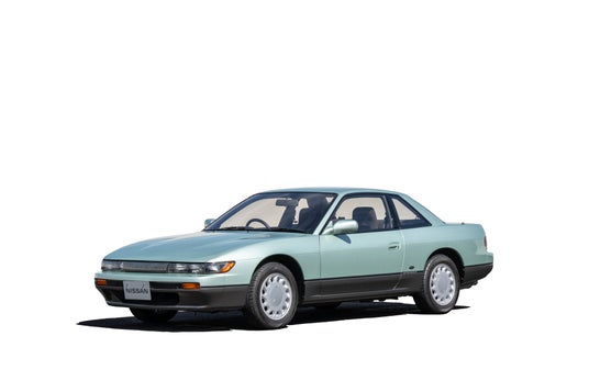 「アートフォース・シルビア」のキャッチコピーとともに1988年5月に登場した5代目シルビア(S13型)は、均整のとれた美しいエクステリアとインテリアが受け入れられ、若者を中心に多くのファンを獲得しました。ほどなく通産省選定グッドデザインと日本カーオブザイヤーを受賞し、その美しさと人気が証明されます。一方で、FR(フロントエンジン・リヤドライブ)の駆動方式、新開発のリヤマルチリンクサスペンションがもたらす走りの楽しさも人気を集めました。このクルマはCA18DEエンジンを搭載する中間グレードの初期型Q's です。