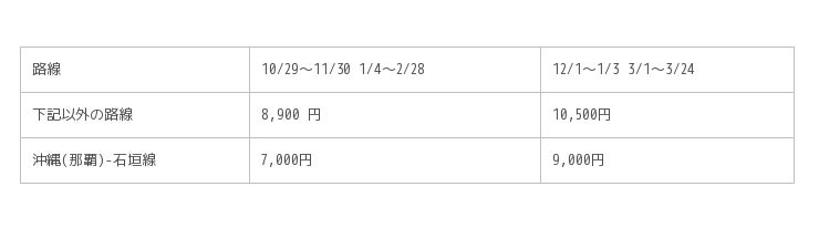さらに運賃水準を 8,900 円~(沖縄 (那覇)-石垣線は 7,000 円~)とし、よりお求めやすくしました。