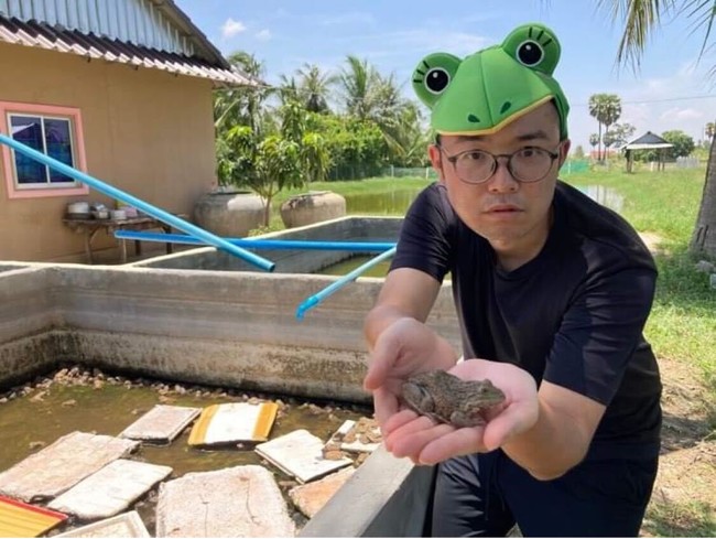 そんな食用ガエルの養殖で世界の食糧危機を救いたいと、カエルの帽子をかぶり「かえるくん」として活動する、橘木良祐(たちばなき・りょうすけ)さんの体験談です。