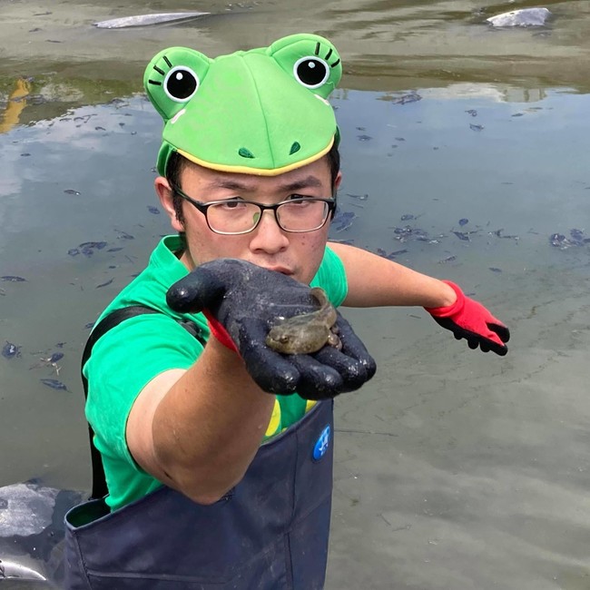 通称”かえるくん”と呼ばれる。カエル研究→海外放浪→飲食店店主→キャビア養殖→カンボジアでコオロギ養殖拠点立ち上げに関わり、カエル養殖を学んでいる。「世の中全ての人々が栄養のあるものを食べられる社会」を養殖で実現します。(詳細は下記「コンテスト参加者の声」を参照)