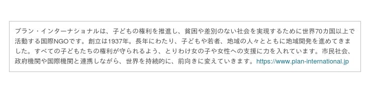 TEL:03-5481-3533(平日9:00~17:30) Eメール:advocacy@plan-international.jp