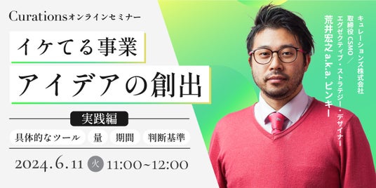 顧客企業のビジネス変革を成功に導くキュレーションズ株式会社(本社:東京都渋谷区、代表取締役社長:根本隆之、以下当社)は、『イケてる事業アイデアの創出:実践編 ~具体的なツール、量、期間、判断基準~』を2024年6月11日(火)に開催いたします