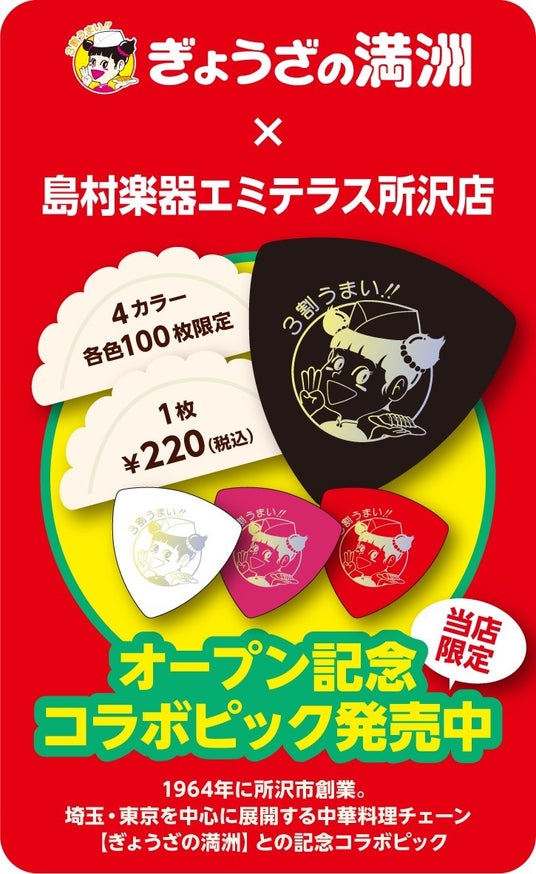 所沢に本店を構える関東、関西を中心とした中華料理店【ぎょうざの満州】との記念タイアップピックを販売します。