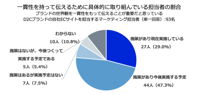 特に対応が遅れているブランド価値向上施策は「ブランドの世界観を一貫性を持って消費者に伝えること」実施できている担当者はわずか3割未満!