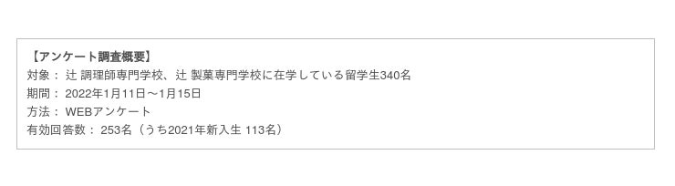 (辻調グループ2020年度留学生アンケート調査:https://www.tsuji.ac.jp/press/news/cat919/news-letter-vol362020.html)