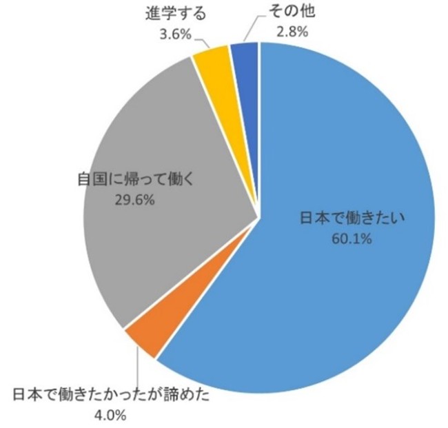 「卒業後は日本で働きたい」と希望する留学生 60.1%