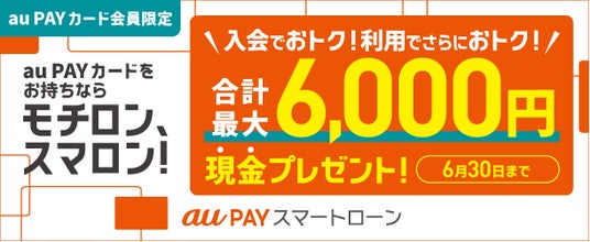 ■【au PAY カード会員限定特典】「au PAY スマートローンご入会でおトク、ご利用でおトク、合計最大6,000円現金プレゼント!」キャンペーンについて