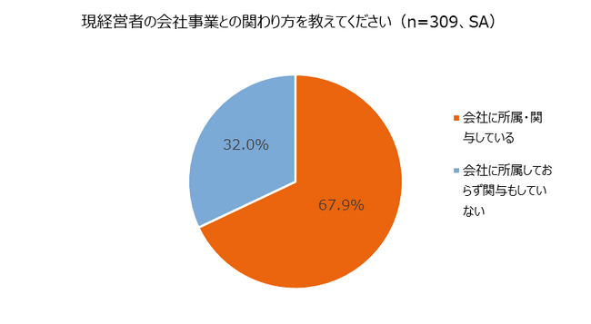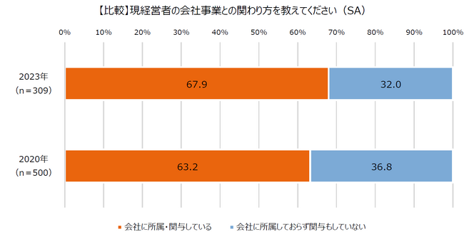 現経営者の会社に所属・関与している人は67.9%。2020年調査とほぼ変わらず