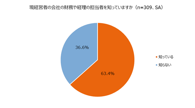 経営者のみが会社の財務状況や経理業務について把握していたため、万が一の際に誰も対応できないという事態が発生するケースがありますが、現経営者の会社の財務や経理の担当者を知っているか聞いたところ、6割以上(63.4%)が「知っている」と回答しました。