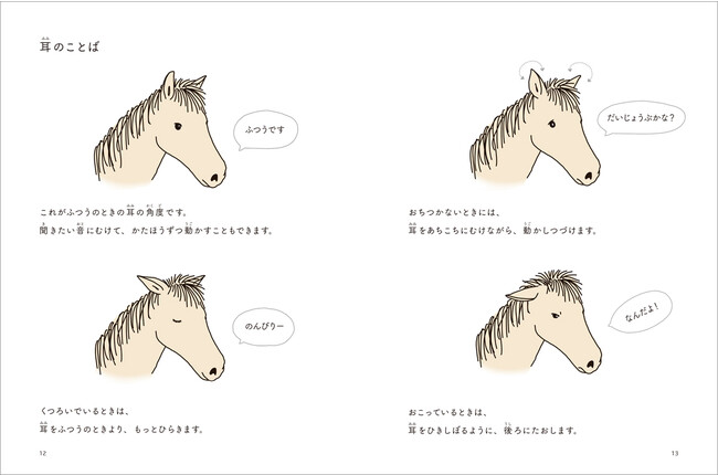 馬は人間のようにことばを話しませんが、表情や体の動きで、周囲に自分の気持ちを伝えています。