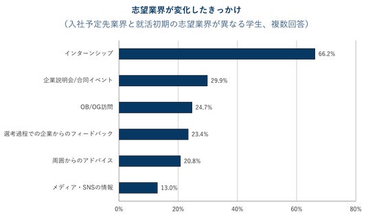 志望業界が変化したきっかけ(入社予定先業界と就活初期の志望業界が異なる学生、複数回答)