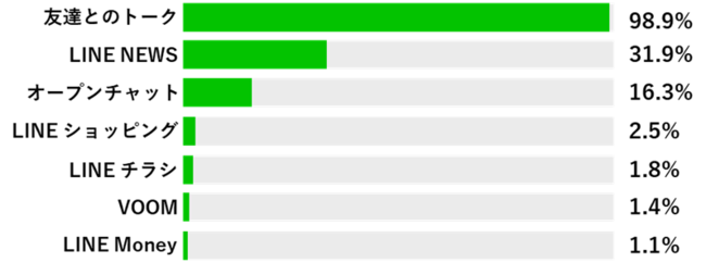 LINEの利用に関してのアンケートでは、トークの利用率が変わらず高いほか、オープンチャットの利用が浸透しつつある様子がうかがえました。オープンチャットとは、LINEの友だちになっていない相手ともトークをすることができ、ユーザーにとって関心の高い情報を収集できるサービスです。カテゴリ・興味関心で参加するため、趣味のほか、就活情報の収集などにも需要が見られます。