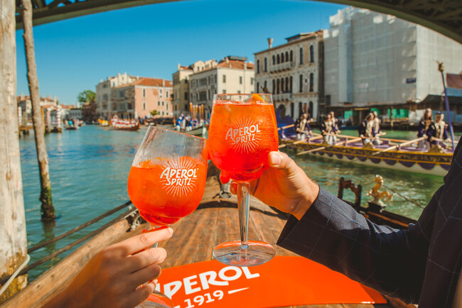 ヴェネチアに近いイタリア北部の古都、パドヴァで1919年に誕生した「アペロール」は、世界売上第3位*のオレンジフレーバーリキュールです。 アペロールを辛口スパークリングワインのプロセッコとソーダで割った「アペロールスプリッツ」は、すっきりとした甘さとわずかな苦みのオレンジがとても飲みやすく、イタリアを始めとするヨーロッパ諸国、アメリカなど世界中で大人気のカクテルです。