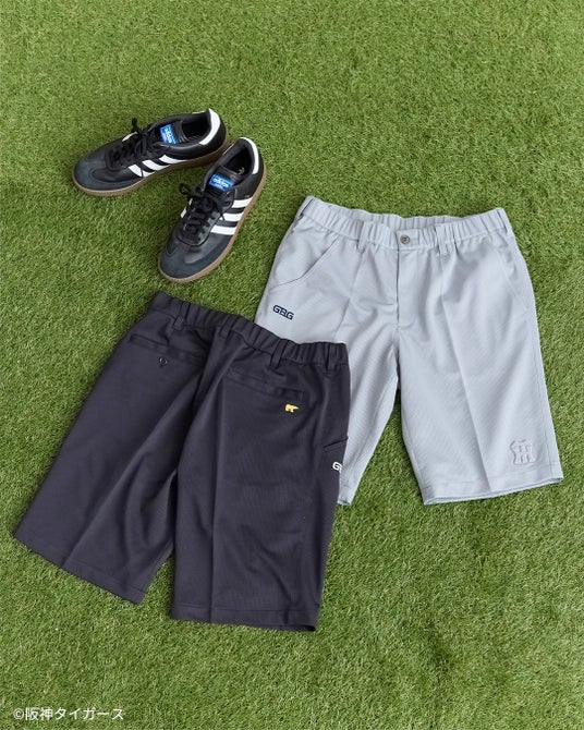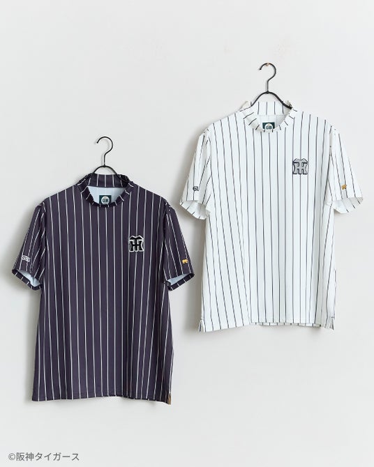 GB GOLFが大切にする「トラッド」と、球団90周年を迎えた阪神タイガースの伝統を表現したシックなネイビー、ホームユニフォームとビジターユニフォームを踏襲した縦縞とグレー、いずれのアイテムもモノトーンカラーで統一しスタイリッシュな印象に。