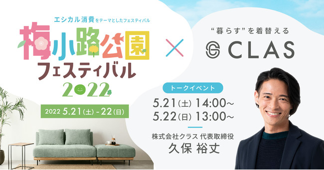「“暮らす”を自由に、軽やかに」をビジョンに掲げ、家具・家電のサブスクリプションサービスCLAS(クラス)を運営する株式会社クラス(本社:東京都目黒区、代表取締役社長:久保裕丈、以下「CLAS」)は、京都市の梅小路公園にて2022年5月21日(土)と22日(日)の二日間開催される、エシカル消費をテーマとした「梅小路公園フェスティバル2022」(https://www.kyoto-fes-event.com/)に代表取締役社長の久保裕丈の参加が決定したことをお知らせいたします。