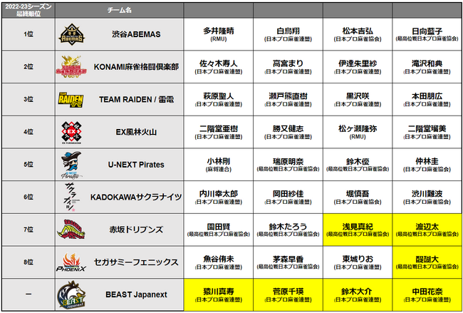 ■Mリーグ2023-24各チーム契約選手一覧