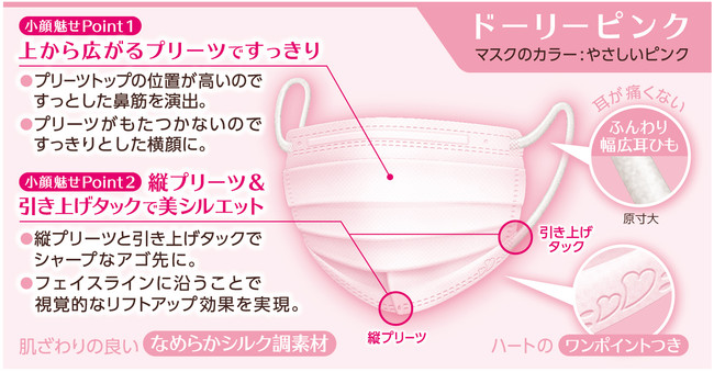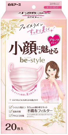 そこで今回、マスク姿をすっきりキレイに見せたいと思う皆様にぴったりのマスクで、“小顔に見える”“フェイスラインがすっきり見える”と、好評をいただいている「ビースタイル プリーツタイプ」から、たっぷり使える『ドーリーピンク20枚入』の限定企画品を新発売いたします。