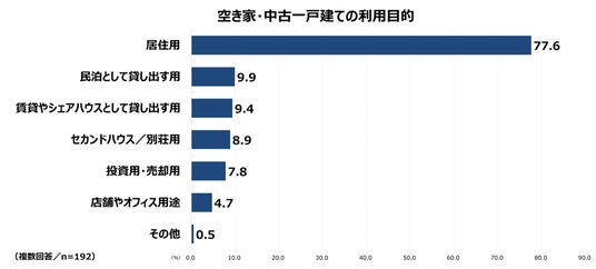一方で、「投資用・売却用」(7.8%)や「店舗・オフィス用途」(4.7%)といった利用目的は比較的少なく、全体としては“生活の場”として空き家を活用しようとする意向が強い傾向が示されました。
